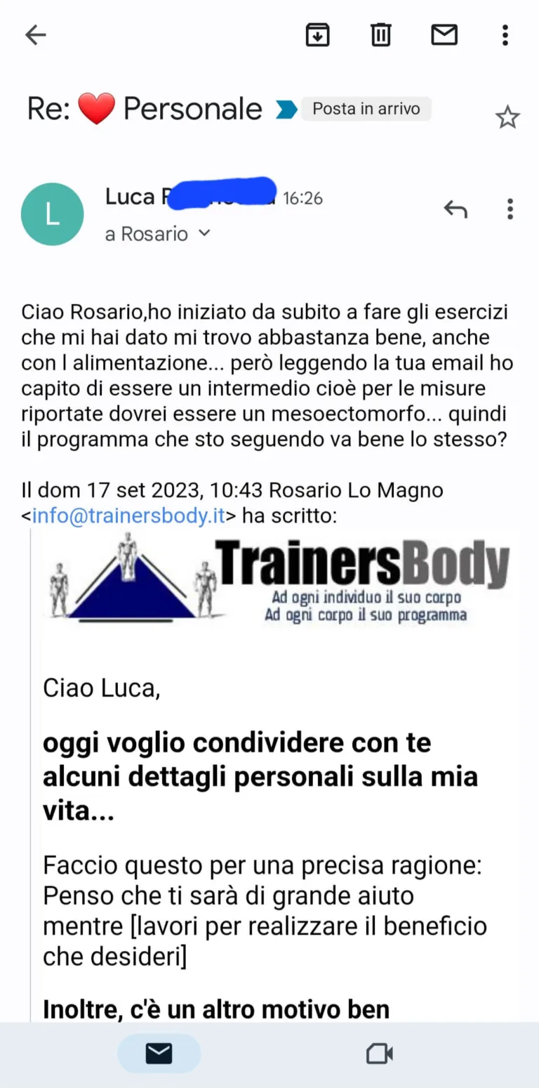 “All’inizio ero un po scettico su programma di Rosario, però mi ha incuriosito questo programma specifico per ectomorfo e ho voluto provare, dopo 6 mesi mi ritrovo con + 17 kg di massa magra!” Provare per credere 💪🏻